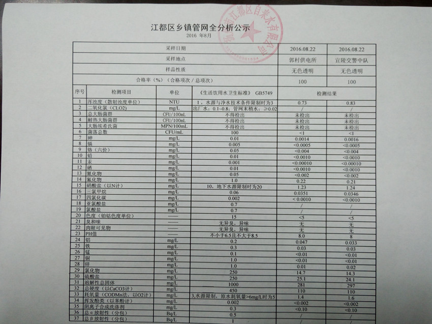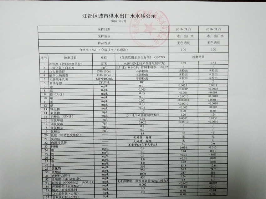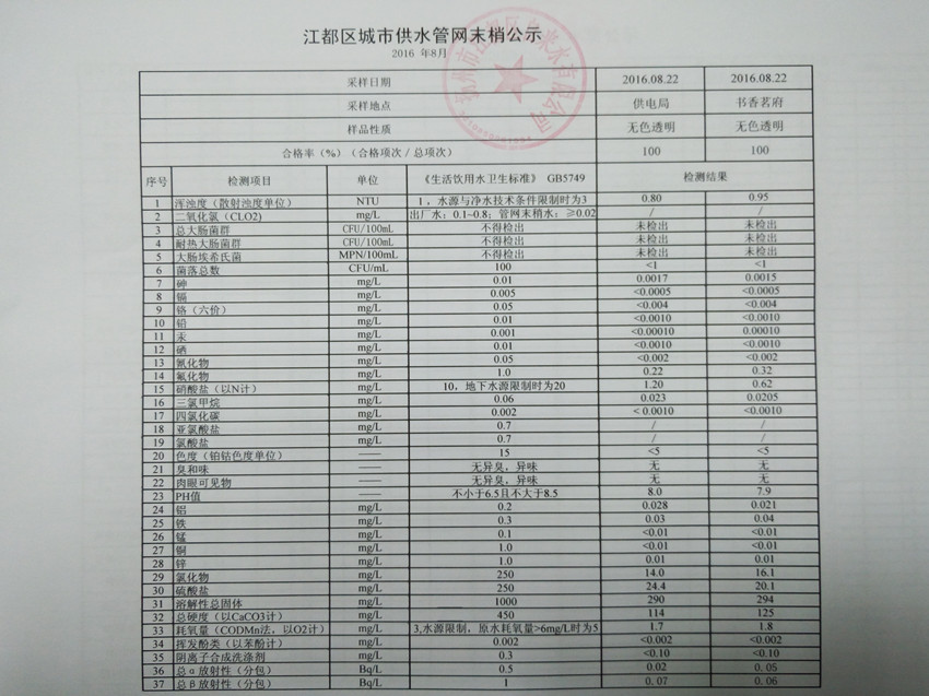 水質(zhì)公示