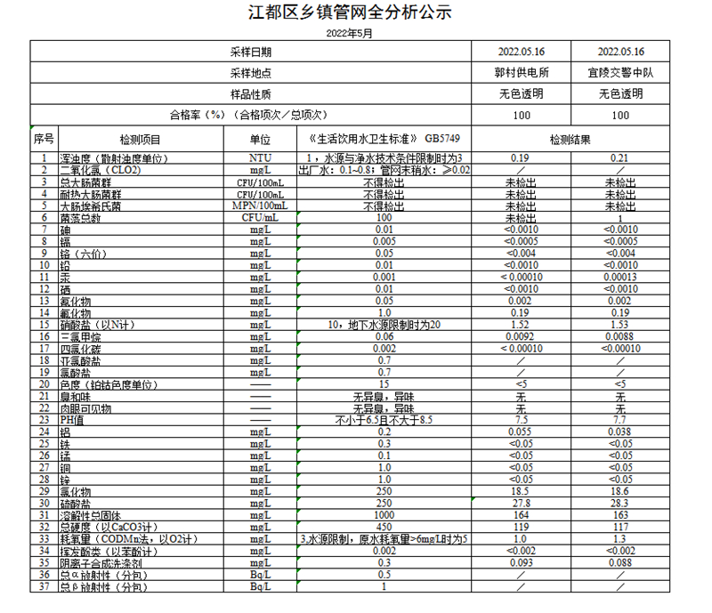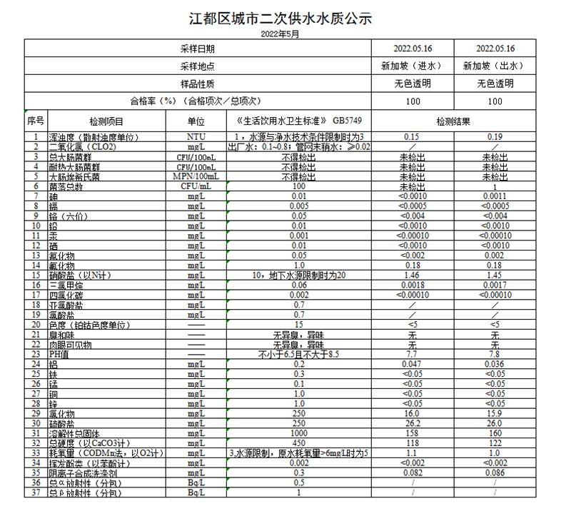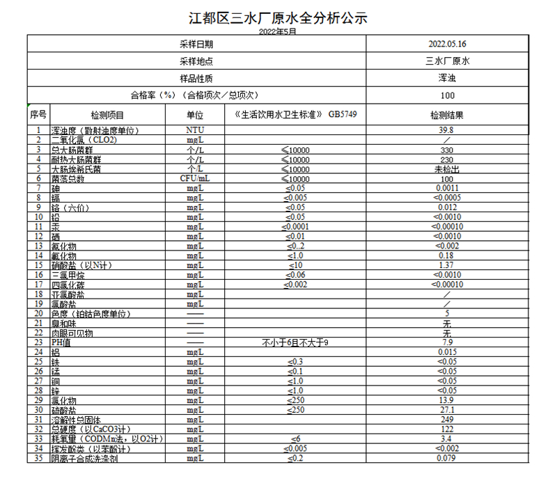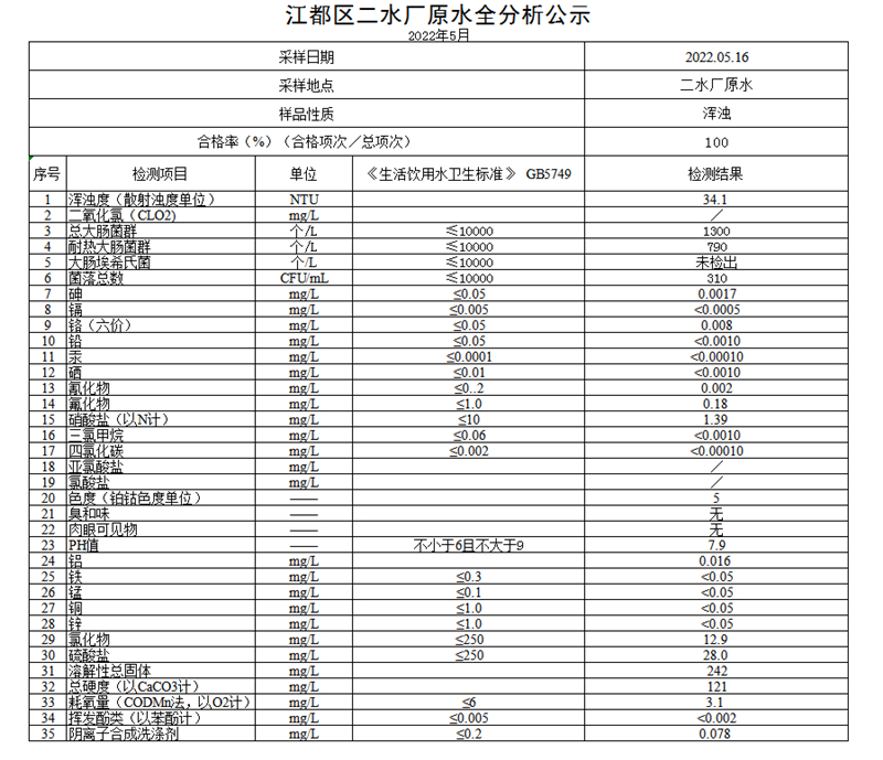 水質(zhì)公示