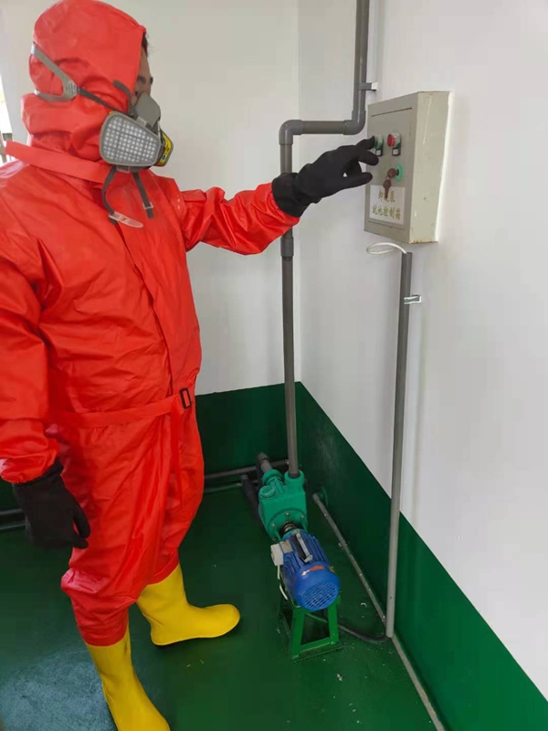 污水公司安全主任謝觀遠還根據相關活動議程和要求,按照公司編制的次氯酸鈉泄漏應急預案,帶領安全員及運營工開展了次氯酸鈉演練活動。