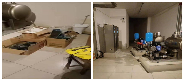 2021年12月20日在巡查過程中發現永勝活力城二次供水泵房內堆放大量雜物,不符合二次供水管理條例并存在安全隱患。而后隨即與物業取得聯系,得知是物業改造電動車充電樁,施工工人將施工工具全部放入泵房,與物業負責人溝通后,于當日下午將二次供水泵房內的雜物全部清除,并打掃干凈。